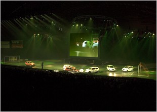 客戶: 合作伙伴: 產品: 評價: 在近期于國家展覽中心和Earls Court展覽中心舉辦的MPH06展覽上,一項重頭戲就是在專門建造的MPH劇院中舉行的車展,其規模之宏大前所未有,令人嘆為觀止。 展覽期間,共有約10萬名汽車愛好者來到兩處地點專門搭建的展覽會場內觀看各種超級跑車的表演,兩個場館分別可容納3,900和4,500人。 Top Gear的Jeremy Clarkson和James May與Fifth Gear TV節目主持人Tiff Needell共同主持了這次表演,每場演出均達75分鐘,并伴隨著水平極高的表演—從伴隨精彩演出的煙火,到顧問公司XL Video所使用的先進而功能強大的DLP投影。 項目經理Lee Spencer采用了XL Video設備租用清單上全新添加的功能強大的Christie S+20K SXGA+ Roadsters,該投影機配備偏光鏡頭,在兩段動畫太空航行的片段中創造出了極為逼真的3D效果。 S+20K由一個強大的3片引擎驅動,能夠提供20,000 ANSI流明的超高亮度,兼具出色的圖像質量、更高的亮度水平、更小占地面積的優勢。 “考慮到場地的大小和采用的煙霧、煙火和燈光的量,我們需要一臺高性能投影機來配合這些超級跑車,”Spencer解釋說。 在兩個造價分別達100萬英鎊的場地中,兩臺吊頂安裝式Roadsters投影機高高懸掛在表演場地之上,下面是轟鳴的引擎、灼熱的輪胎和火熱的高難度動作。 PMI的Simon Aldridge與Top Gear的設計師Andy Willman共同負責這次展覽的設計和布置,Simon Aldridge稱,兩臺投影機在展覽期間的表現堪稱完美,非常好地解決了展覽中存在的高風險。 然而,我們曾舉行了十天的預演;展覽經過細致的指導,駕駛員們也非常小心謹慎,摂他指出。 視覺工程師Dean Ruffy和放映員Darren Montague對Roadsters的性能都感到非常滿意,該投影機從一組三攝像機(Sony E10)PPU獲取現場信號,并從兩臺Doremi硬盤驅動器和PRG Lighting的多媒體服務器Xbox Extreme獲取圖像信號。 “我們在兩臺投影機上分別使用一個DVI信源,然后將其合二為一,”Ruffy說。他負責在XL Video裝備齊全、配備六臺攝像機的轉播車內進行視頻混合工作。 “由于我們使用了偏光濾鏡,因而必須采用功能強大、性能出色的投影機。” 雖然Dean非常了解Christie的聲譽,但這還是他第一次使用Christie的新投影機。 “我很快注意到,顯示的黑色效果非常標準,而且S+20K比其它同類投影機的亮度高得多;另外,只需兩個人就能搬運,不像其它投影機那樣需要四個人搬運,而所提供的亮度卻是其它投影機的兩倍。 “另外,它還提供了一些有用的測試模式,可在傳輸信號前使用,這對投影機組合和輸出信號的檢查確認非常有幫助。” SDI信號通過帶有RCV2控制的Doremi硬盤驅動器輸出。 輸出數據通過一臺Folsom ImagePRO掃描轉換器,將800 x 600的SVGA分辨率降低到768 x 576 50Hz交錯PAL制式。 然后在Grass Valley Model 1200上進行視頻混合。 據Ruffy稱,這一組合能夠產生最佳的圖像質量。 投影內容由包括沃爾沃“云”廣告和詹姆士·邦德預告片的G5計算機以及播放預演節目的回路觸發,同時由Mbox輸出Vauxhall Meriva的圖像和有神秘試車手Stig參加的精彩決賽。 參與制作的其它公司還有Cloud One Group(采用Adamson Y10組合負責聲效制作)、Unusual Rigging(負責場地建造)和Le Maitre提供煙火和煙霧效果;燈光設計師由Steve Sinclair擔任。 本次活動由Clarion Events和Brand Events共同推出,由Bas Bungish擔任演出總監。 明年還將計劃舉辦三項活動,并將回歸國家展覽中心和Earls Court展覽中心,還將于2月參觀約翰內斯堡的可口可樂運動場。 |