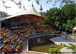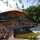 為解決投影機到屏幕之間距離過長(15米)的問題,專門采用了2,5-4,5:1的變焦鏡頭。 為確保太陽光不會直射在4 x 3米的屏幕上,Steinhausers團隊想辦法將陽光“遮擋”起來。 為此,需要先測量和計算陽光的路線。 然后使用一塊深色背投箔片,并用絨氈將周圍的部件遮蓋起來。 舞臺技術專家Franz Steinhauser說:“我們最終成功建造了一個日光影院。” |