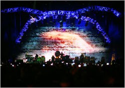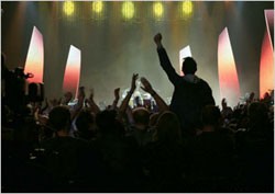 客戶: 產(chǎn)品: 合作伙伴: 簡(jiǎn)介: 去年12月,Led Zeppelin在倫敦的O2 Arena為Ahmet Ertegun舉行其富有傳奇色彩的Tribute演唱會(huì)時(shí),280平方米的LED屏幕讓公眾嘆為觀止,令內(nèi)部人士好奇的是,怎樣才能在一個(gè)控制平臺(tái)上再現(xiàn)所有的影像因素,包括變形、畫中畫等。 對(duì)于象創(chuàng)新科技這樣的提供屏幕和控制裝置的AV服務(wù)公司來說,答案是Vista Systems Spyder視頻處理器。 結(jié)構(gòu)設(shè)計(jì)為高10、寬28米,采用1700塊平板,由Harvey GoldSMIth Productions的Jim Baggott領(lǐng)導(dǎo)的智庫(kù)負(fù)責(zé)設(shè)計(jì),成員包括設(shè)計(jì)師Peter Bingemann、Thinkfarm的投影/動(dòng)畫專家Mark Norton、Live & Direct的視頻協(xié)調(diào)師Mike Walker 和Led Zeppelin的代表Steve Iredale。 結(jié)構(gòu)設(shè)計(jì)與Dave Hill的燈光設(shè)計(jì)結(jié)合在一起,視頻導(dǎo)演由Cheese Film & Video的Dick Carruthers擔(dān)任。 2個(gè)6 x 6側(cè)幕分布于主幕布兩側(cè),由于采用復(fù)雜的處理,演出實(shí)況的藝術(shù)性達(dá)到了新的高度。 屏幕經(jīng)過控制,不僅顯示內(nèi)容,還展示過程。 在Spyder操作人員Richard Turner手中,過程變得富有創(chuàng)意。 顯示內(nèi)容結(jié)合了Thinkfarm的動(dòng)畫短片和Dick Carruther的實(shí)況轉(zhuǎn)播畫面。 有10個(gè)輸入和6個(gè)輸出的Spyder,可以將Carruthers的桌面內(nèi)容與其它信源結(jié)合在一起,然后加以分割,輸送到2個(gè)用來驅(qū)動(dòng)LED墻的屏幕處理器。 “關(guān)鍵之處是要讓16個(gè)頻道都可以使用,10個(gè)輸入,6個(gè)輸出,通過Spyder的數(shù)字化結(jié)合,在各個(gè)Spyder層上都可以得到所有的信源,”CT的業(yè)務(wù)開發(fā)經(jīng)理Adrian Offord說。 我們可以將FOH的Spyder系統(tǒng)與工程后臺(tái)連接起來,因?yàn)槲覀兪褂昧艘粋€(gè)光纖以太網(wǎng)連接,可以使網(wǎng)絡(luò)的運(yùn)行距離延長(zhǎng)。” Spyder的輸入包括3個(gè)來自Snell & Wilcox Kahuna HD/SD制作交換機(jī)的混合信號(hào),其中包括主鍵和畫中畫,均為高清晰度信號(hào);其它輸入包括4個(gè)EVS播放和Final Cut Pro頻道,利用PowerPoint提供遮幅。 這些設(shè)施可以圍繞數(shù)字內(nèi)容確定信源的格式,甚至支架的格式。 Spyder還采用內(nèi)部靜態(tài)存儲(chǔ),重疊半透明的遮幅。 2個(gè)輸出用于LED墻,1個(gè)輸出用于主屏幕,1個(gè)用于操作人員顯示器。 “這是一次復(fù)雜的演出,”Adrian Offord說。 “節(jié)目涉及到使用不同的定時(shí)設(shè)計(jì),要利用Spyder的綜合腳本編制能力?!? Spyder工程師 Sid Lobb介紹了內(nèi)容傳遞企業(yè)端的巨大成功。 “使用Spyder和Kahuna技術(shù),可以相互補(bǔ)充。 “Spyder的主要成就是保證分辨率和刷新率。 處理LED墻的尺寸和畫中畫的能力也是最終決定采用Spyder的考慮因素之一。 處理器可以處理Kahuna和EVS的輸出,然后以導(dǎo)演想要的任何方式、任何形狀把它們顯示在屏幕上。 這包括從實(shí)況畫面到DVE變形圖像的各種畫面。 “播放的材料可能有3個(gè)層次,”Dick Carruthers指出。 “在《Kashmir》這樣的歌中,Richard [Turner]可以直接從2個(gè)6頻道高清晰度LSF處理器中獲取內(nèi)容,隨后將這個(gè)與實(shí)況畫面結(jié)合起來?!?最后的結(jié)果是將抽象的圖像與軟邊緣融合結(jié)合起來,營(yíng)造一種適合于每一首歌的意境 “我想,我們?nèi)〉昧似胶猓彼f。 “屏幕很好,將動(dòng)畫與演唱會(huì)實(shí)況結(jié)合在了一起?!? Vista Spyder發(fā)揮了非常重要的作用。 現(xiàn)在Avesco Group擁有不少于11臺(tái)的Vista Systems Spyders,大小不一。 公司的高級(jí)視覺處理器有各種用途,從電視到公司的商務(wù)應(yīng)用。CT Media Systems技術(shù)經(jīng)理Tim Volker于2005年7月被派到NAB Show,對(duì)各種方案進(jìn)行評(píng)估。 “采購(gòu)時(shí)的主要需求是多種輸入類型,”Media Systems主管Gary Holford說。 “And Spyder是這方面的佼佼者。 “在我們所看過的系統(tǒng)中,我們偏愛Vista Spyder,因?yàn)樗捎昧吮萔ista Montage更先進(jìn)的第2代技術(shù)的優(yōu)勢(shì)。 “我們還考慮了它的可用性。 從操作人員的角度看,其直觀的界面實(shí)用美觀,便于實(shí)現(xiàn)既定目標(biāo)?!? 總之,Spyder的外形小巧,具有多功能性,適用于各種應(yīng)用。 Spyder很靈活,可以在多個(gè)窗口中混合大量的信源,定義各種畫中畫,融合各種邊緣。 除了搖滾演唱會(huì),Spyder還可以用在企業(yè)環(huán)境的各種應(yīng)用,其軟邊緣融合和畫中畫尤其實(shí)用。 Vista Spyder另一個(gè)高端應(yīng)用是最近Big Brother的連續(xù)劇,其畫中畫與不同的畫面效果結(jié)合在一起,構(gòu)成了導(dǎo)演Tony Gregory所需要的畫面。 “他來到辦公室,說‘我們需要這種效果’,”Adrian Offord回憶說。 “我們毫不猶豫地告訴他‘你需要Spyder’,所以,它成了我們非常有用的工具?!? LED ZEPPELIN為AHMET ERTEGUN舉行的TRIBUTE演唱會(huì)視頻 |