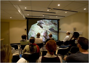 最后,2D圖像可以放置在‘道路點’上,使得實際結構(例如外形特異的山丘)的真實圖像以覆蓋圖的形式融合到3D數據中。 所有內容都可以在BGS全新的放映廳內觀看,該放映廳采用AMX遙控裝置,可容納20名地質學家。 然而,負責開發多個3D模型的BGS地質調查專家Stuart Clarke博士稱,在小規模團隊(5到6人)使用時,該場所方可發揮出最佳效果,因為使用者可以靠近屏幕,“完全沉浸在其中,充分利用3D立體效果的優勢。” 他還說:“到Virtalis系統的反應效果良好,使我們能夠充分利用3D模型環境,帶來完全不同的效果。 現在,我們能夠在立體環境中觀察地質模型,并與其它人員密切合作。