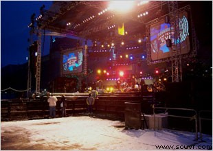 活動(dòng)運(yùn)用一個(gè)70’ x 40’的舞臺(tái),采用了4臺(tái)柴油發(fā)電機(jī)、一臺(tái)1x53’ HDTV轉(zhuǎn)播車、一臺(tái)1x39’音頻轉(zhuǎn)播車用于音效混合、2臺(tái)混合控制臺(tái)用于建筑前放映和舞臺(tái)監(jiān)控、500,000瓦的燈光和大約120,000瓦的音效強(qiáng)化,堪稱規(guī)模宏大。 此外,在3萬多名加拿大群眾的熱情歡呼下,它實(shí)現(xiàn)了高清新年節(jié)目的巨大成功。 |