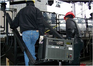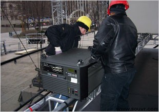 IdeaCity會(huì)議的一項(xiàng)技術(shù)難題就是如何從第一段的高清信源切換到第二段的標(biāo)清信源,然后再切回高清,以投影最后一段剪輯。 “第一段剪輯的效果讓人震撼不已,猶如在影院中一般。 它的規(guī)格和亮度都堪稱最佳。 當(dāng)我們切換到第二段的標(biāo)清內(nèi)容時(shí),觀眾們都有所察覺,紛紛詢問第二部影片出現(xiàn)了什么問題。 現(xiàn)在,我們已經(jīng)收到了《國家地理》雜志的攝影師們對(duì)顯示效果的巨大改善的評(píng)價(jià),”Beaulieu說道。 兩臺(tái)Christie Roadster S+16K連接一個(gè)原始1.4GB高清信源,由HDTV移動(dòng)轉(zhuǎn)播車通過550’的光纜傳輸新年之夜慶祝活動(dòng)的信號(hào)。 演出中的照明功率高達(dá)500,000瓦。 “無論怎樣調(diào)低屏幕上的投影亮度,始終都會(huì)留有余裕,”Beaulieu說道。 投影的內(nèi)容爭奇斗艷,各領(lǐng)風(fēng)騷,但每臺(tái)投影機(jī)都具有高達(dá)16,000 ANSI流明的亮度,投影出清晰明亮、鮮艷奪目的影像。