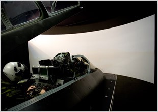 培訓選擇了一個3信道解決方案,采用3臺專為該領域設計制造的Christie DS+25 SXGA+單片DLP® 投影機和一個2.7米半徑的圓柱狀屏幕。 DS+25外形極為緊湊,是目前最小巧的高分辨率DLP® 投影機,它采用全新技術,可以提供2500流明的亮度、2500:1的對比度,黑白分明,可提供極佳的圖像清晰度。 投影機還配備了ChristieNET™ CCM,能夠對設備進行遠程操作、控制和監控。 設計方案本身需要一套獨立、自支撐的投影系統,將飛行員封閉在一個光控制的黑暗環境內,以增強“沉浸”的特點和模擬仿真體驗。
