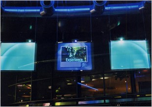 全息屏幕是創(chuàng)新性的涂有薄膜的丙烯酸全息背投表面,可以消除不相關(guān)的光線的影響,從而提供高度清晰的圖像。 用8mm的繩線,將顯示器從2層樓的露臺(tái)緊挨著懸掛在空中可以清晰地看到的地方。 顯示器懸掛在地面中庭上方3.5米處,緊靠著露臺(tái)的邊緣,接收由Immedia的合作伙伴 - 已經(jīng)承包了廣告內(nèi)容的POPtv所提供的內(nèi)容。 “所有的全息屏幕都可以顯示單獨(dú)的圖像,POPtv將這些屏幕進(jìn)行了分組,3塊用來顯示品牌內(nèi)容,中間點(diǎn)綴一些音樂視頻。”Immedia的技術(shù)經(jīng)理Richard Passman說。 節(jié)目內(nèi)容是用LX35投影的。LX35投影機(jī)具有3500 ANSl流明的燈光輸出能力和不可思議的800:1對比度,觀看起來非常方便。 它可以提供出色的視頻或數(shù)據(jù)的圖像質(zhì)量(使用一個(gè)數(shù)字視頻界面來直接地接收數(shù)據(jù)信號),不會(huì)因?yàn)橛赡M信號轉(zhuǎn)換而來而降低圖像質(zhì)量。