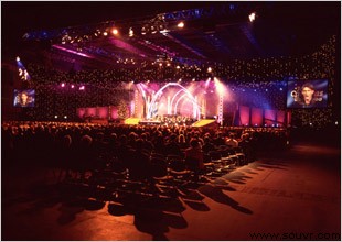 2臺Christie Roadie X10投影系統將紀錄片和直播內容投射到屏幕上。 Roadie投影機是第一款特制租賃舞臺投影機,是專為這一類活動而開發的。這種投影機采用3個DMD晶片,可以進行數字光處理(DLP),亮度極高,每臺都達到10,000 ANSI流明。 在這個應用中,每臺投影機都配有7-15:1長焦距鏡頭,由于投影機可以提供的亮度很高,所以盡管投影機與屏幕之間的投影焦距很長,仍然可以在屏幕上顯示明亮清晰的畫面。 投影機所采用的反射DLP技術可以精確再現圖像和色彩效果。 屏幕上表演者自然逼真的膚色很好地說明了這一點。 另外還有2臺Roadie投影機,以雙疊加的方式出現,其中每一臺都投射同樣的圖像,從而形成對比效果很好的畫面。雖然舞臺燈光的強烈光束形成了相互沖突的光線效果,觀眾所看到的投影畫面仍然很清晰。 Roadie的設計已經考慮到了這種用途,Roadie X10便于調節,可以將兩臺投影機的投影畫面精確地重疊在一起。 投影機投射顯示各種內容,包括攝像機所拍攝的現場實況畫面、復合視頻內容以及digi-beta內容,演出期間運行狀態很平穩,對于這樣一次重要的直播活動而言,這具有非常重要的意義。 |