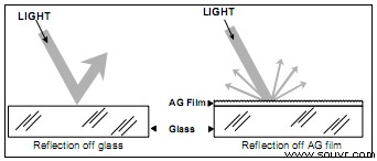 產(chǎn)品簡介 Planar公司提供多種電致發(fā)光顯示器,并采用超薄聚碳酸酯顯示膜涂層。由于采用了粗糙的微觀表面,在90%的顯示器玻璃亮度傳送過程中,產(chǎn)品表面可以有效地擴散眩光。如圖一所示,黏附的薄膜可以分散鏡面反光,極大地減少了眩光,并提高了可見度。