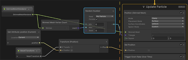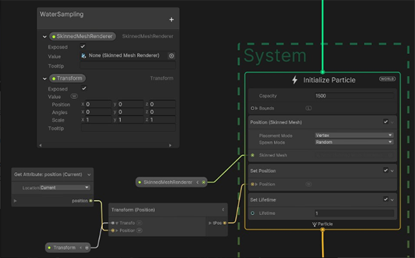 如需使用此功能,請在初始化、更新或輸出內容中使用位置(蒙皮網格)操作符,具體取決于想要達到的效果。