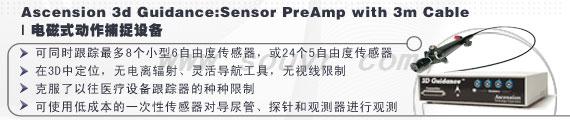 3D Guidance由一個電子元件及多個變頻器和界面裝置組成,與脈沖直流磁力傳感器連用,可用于醫療器械的導引。