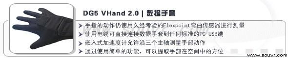 2007年11月:DGTech?Engineering Solutions公司在市場上推出全新的VHand數(shù)據(jù)手套版本。經(jīng)過完全重新設計的數(shù)據(jù)手套內(nèi)部嵌入一塊采集板。在同一電路板上已經(jīng)安裝了一個完整的3軸加速度計,可精準測量手的動作和方向,極大增強了該完整傳感器的應用領域。手指的動作仍使用久經(jīng)考驗的Flexpoint彎曲傳感器進行測量。